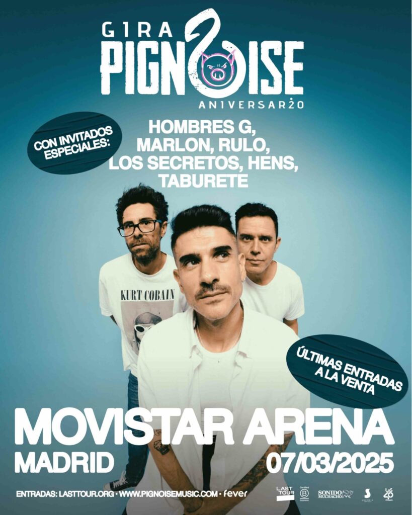 En la agenda para este viernes 7 de marzo hemos recopilado una pequeña selección de conciertos, empezando por el concierto celebrando el 20 aniversario de Pignoise en el Movistar Arena (anteriormente el Wizink Center o Palacio de los Deportes), junto a invitados especiales como Hombres G, Loquillo, Los Secretos o Taburete entre otros. A su vez tendremos a Megara en la sala Cool, e Inazio, artista navarro, en la Riviera.