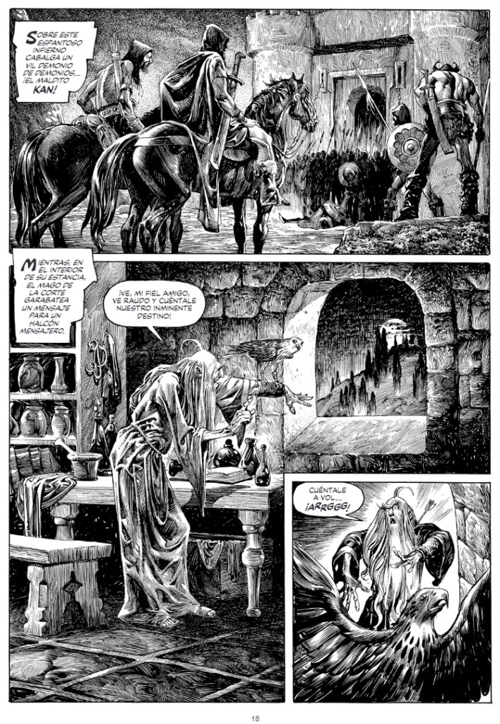 El material incluido en este tomo lo completa un acertado portafolio con alucinantes ilustraciones a página completa de Voltar en manos de Alcalá, definido con toda la razón como «un esplendor visual siguiendo la tradición de los maestros». Del mismo modo que cada viñeta de las dos historias largas incluidas, completamente atemporales a la hora de disfrutar de su contenido y dibujos, estas últimas ilustraciones nos recuerdan la verdadera grandeza creadora de un autor capaz de perdernos completamente en sus imposibles horizontes de líneas dibujadas a tinta sobre papel. Paisajes y escenas que nos hicieron soñar a muchos cuando les descubrimos con ese otro personaje al que resulta inevitable volver, como reconoce su propio hijo Christian Voltar Alcalá: «el Conan «de» Alcalá era el mejor de todos. Era el mejor Conan dibujado para los cómics y era el mejor Conan ilustrado también. El personaje le daría la fama y él daría forma al personaje. (…) Voltar y Conan fueron lo mejor en fantasía heroica». Que no te quepa ninguna duda. Este excepcional libro además es posible conseguirlo a un precio excepcionalmente razonable si tenemos en cuenta el elevado nivel de precios actual en comparación con la excelencia, cuidado y atención especial que todos los implicados en esta edición demuestran con lo que ha llegado a nuestras manos.