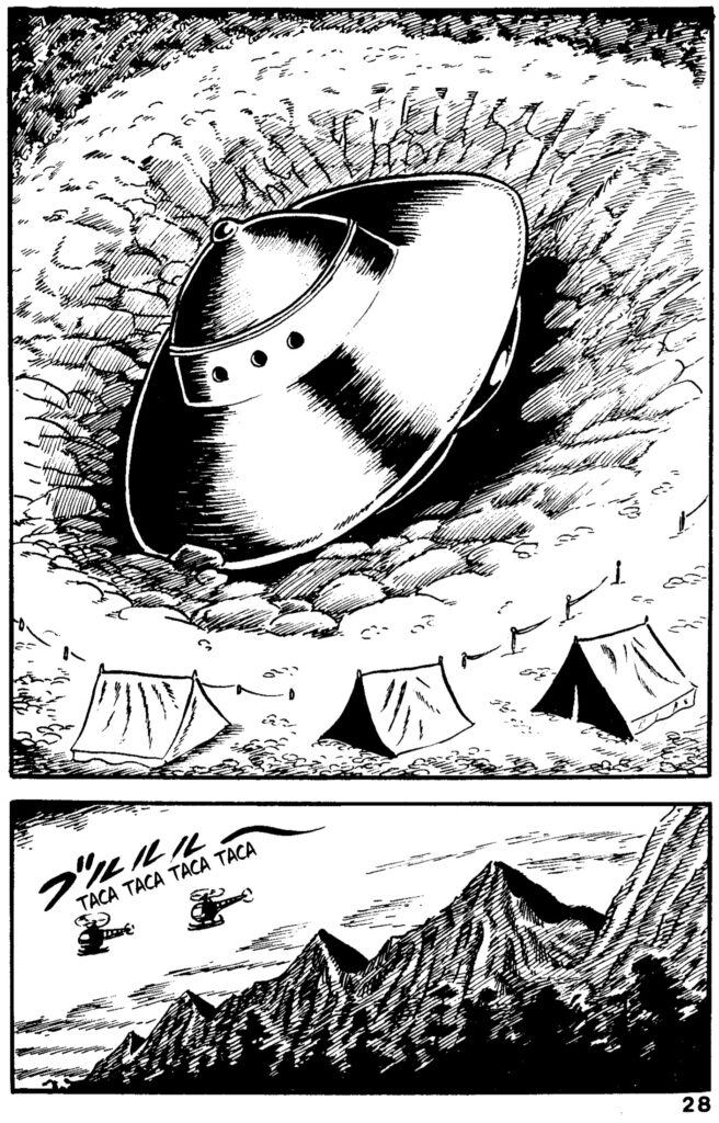 Tras un prólogo iluminado por ilustraciones más explicativas que narrativas sobre el fenómeno ovni, recordándonos todas esas preguntas acerca de si estamos solos en el universo que todos hemos repetido cuando aún somos más emocionales que racionales, la historia de La invasión de los hongos del espacio arranca al fin fijando nuestra mirada en Aoki, improvisado narrador infantil que queda atrapado con su profesor por culpa de una esguince en las montañas de Ubagatake, en Japón, cuando se encontraba en una excursión escolar. Gracias a estar en ese lugar esa noche, maestro y alumno asisten a la inesperada y espectacular llegada y colisión fatal de un verdadero platillo volante. No queremos contaros mucho más para que os asombréis tanto como nosotros al pasar cada página, pero lo cierto es que Shirakawa hace un uso magistral de la tensión narrativa entremezclando tópicos que ya a finales de la década de los 70 estaban tan trillados como el fatal secretismo gubernamental, la incredulidad de la opinión pública o la presencia de algo más que los pilotos dentro de la nave espacial. Y es que cuando los hongos que dan título a este manga hacen acto de presencia, el libro da tal giro manteniendo esos dibujos tan «inocentes» que tendrás que aguantar la respiración sin poder parar de leer hasta el final mientras te haces tú también la pregunta de si ¿podrá sobrevivir la Tierra a la invasión de los hongos espaciales? Si te apasiona el fenómeno ovni, las invasiones alienígenas y la ciencia ficción, no puedes dejar que termine 2025 sin descubrir este apasionante manga.