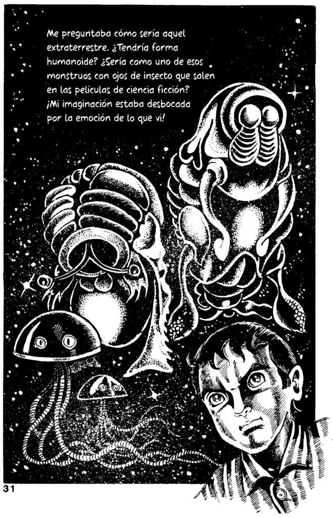 El experto en fenómenos paranormales Takeo Udagawa nos cuenta, como segundo autor invitado de los extras en un excelente ensayo titulado «¡Yo te creo, Marina Shirakawa!», como el autor «dibujó numerosos mangas en los que la Tierra era invadida por extrañas formas de vida del espacio exterior. Entre ellos, encontramos Hitogui enban (El platillo volante devorador de hombres, septiembre de 1974), cuya solapa interior presenta una fotografía de un ovni tomada por el propio dibujante, también Donzuru enban (El platillo volante del Monte Donzuru, mayo de 1975). Asimismo, su obra más famosa es Shinryaku enban kinokonga (La invasión de los hongos del espacio, diciembre de 1976), muy conocida entre los fans de los mangas esotéricos por su reedición en 1998 como parte de la serie QJ manga sensho de la editorial Ota Shuppan. Estos tres títulos fueron publicados originalmente por la casa de kashibon (libros de alquiler) Akebono Shuppan de Tokio».
