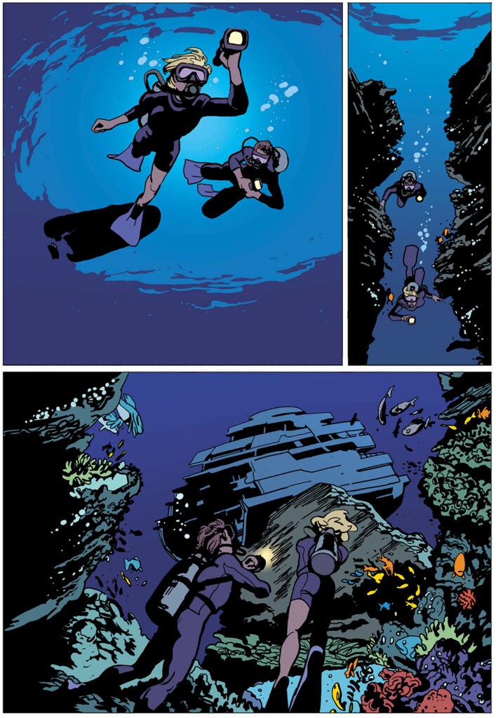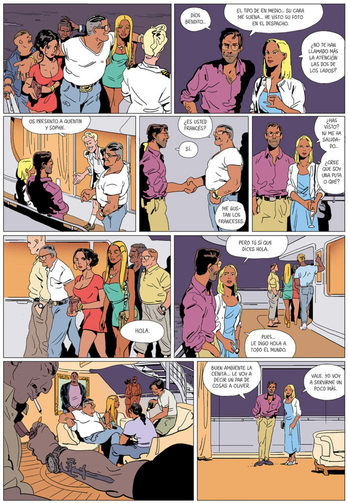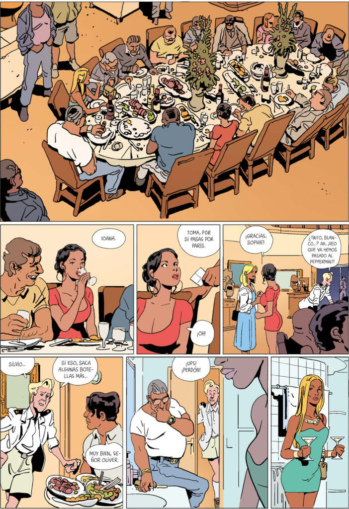 Sophie y Quentin son una pareja con hijos muy bien avenida que sólo trataban de disfrutar de nuevo de unas vacaciones solos al haber encontrado a alguien que cuidase de su prole. El problema es que, contra toda intuición de evitar compañías perjudiciales, aceptan la invitación del amigo de una amiga a quien encuentran de casualidad en la idílica isla mediterránea en la que esperaban pasar un final de vacaciones tranquilo. deberían poder disfrutar finalmente de sus vacaciones. Y, una vez que suben a bordo del yate en el que esperaban apenas tomar una copa y seguir con sus vidas, el destino les mete de lleno en lo que podría ser un escenario a caballo entre El padrino y una película de James Bond. En semejante jardín, Quentin, que no olvida nunca un rostro y Sophie, verdadera enciclopedia viviente capaz de hablas una decena de idiomas se enfrentan a la aventura de sus vidas en un cómic que se lee del tirón y que releerás con seguridad para disfrutar de nuevo del excelente dibujo de un autor que vuelve a superarse a si mismo dejándose llevar por una historia que es puro entretenimiento. La mejor noticia de todas: que Diábolo Ediciones ya ha anunciado que la poco convencional visión de la luna de miel de Bastien Vivès continuará en marzo del año que viene con el segundo tomo, ya editado en Francia, titulado Le secret de Coatlicue. A la espera de ese momento, te recomendamos encarecidamente que descubras este tesoro en bruto que es Luna de miel. El beso de la esfinge.