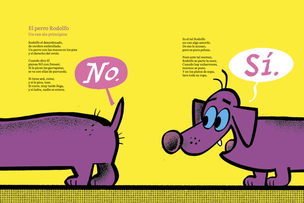 Blanca Lacasa y Lorenzo Montatore coinciden por suerte en que para afrontar algo tan aparentemente serio lo mejor es una de las cosas más sencillas y básicas que mueven el mundo y a cualquier persona: el humor. Ninguno de ellos son novatos a la hora de afrontar textos y obra dedicada a los niños. Saben muy bien lo que hacen. Y, en esta ocasión, Blanca Lacasa ha optado por algo que a los de cierta edad nos trae muy buenos recuerdos y cierta nostalgia de otra autora que se nos quedó a varias generaciones en la memoria por su inigualable forma de enseñar a los niños mediante el humor y la poesía. De ahí el homenaje a la gran poetisa Gloria Fuertes cuando explica el contenido del libro: «No creo que haya nada más universal que el miedo. Y más transversal y más transgeneracional y más todo. El miedo está siempre. Este libro va de eso: de los canguelos que tenemos. Al agua, a la oscuridad, a las pesadillas, a ser distintos, a hablar en público… Pero todo con bien de risazas y con personajes delirantes de nombres hilarantes. La cotorra Priscila que se caga si habla en público, el dragón Topolino, incapaz de escupir fuego o el conejo Rigoberto que tiene (¡ja!) miedo a los espacios cerrados. Y como aquí somos muy fans de Gloria Fuertes, pues las historias de cada uno de ellos se cuentan en unas gráciles rimas ilustradas, como ya digo, por unos maravillosos dibujos marca Montatore«.