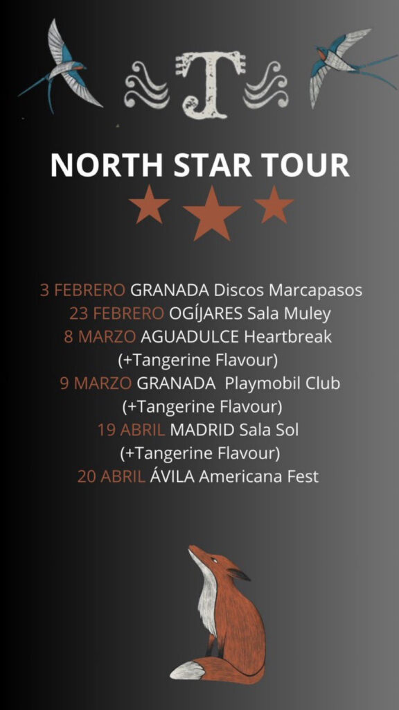 El North Star Tour se inicio el pasado 3 de febrero en Granada, concretamente en la mítica tienda Discos Marcapasos, con un showcase en el que el publico de la ciudad pudo disfrutar de primera mano de la calidad de estas nuevas canciones. Desde ese momento la gira llevara a Javi Tejero a recorrer varios lugares de Andalucia hasta la fecha grande del 9 de marzo (ENTRADAS) , día en el que presentara oficialmente en su Granada natal el disco ¨Minnesota¨, una fecha en la que estará acompañado por los madrileños Tangerine Flavour, un binomio que repetirá actuación juntos el 19 de abril, pero esta vez en la sala El Sol de Madrid (ENTRADAS). La última fecha, por el momento, será el 20 de abril en el recién inaugurado Ávila Americana Fest, un festival de reciente creación y que en breve presentara su cartel definitivo.