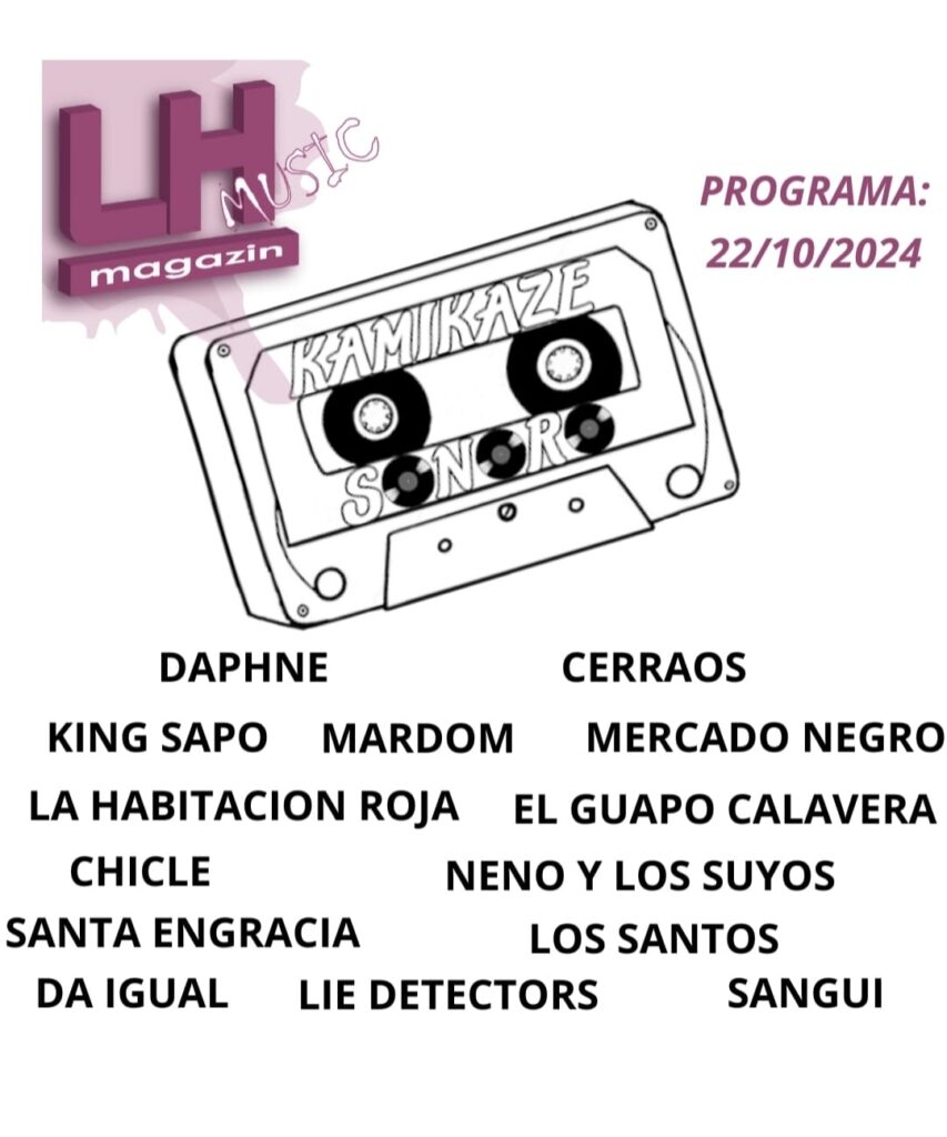 En la edición de hoy nos hemos encontrado con DAPHNE y su rock bañado de electrónica que nos invita a un viaje lleno de sensaciones, CERRAOS que mantienen la poesía con el rock urbano, KING SAPO con toda la energía del rock and roll, MARDOM nos acercan al pop con base bailable, MERCADO NEGRO nos hacen viajar a tiempos de infancia en una balada rock increible, LA HABITACIÓN ROJA la banda INDIE nos presenta una balada intensa, EL GUAPO CALAVERA y su rock de calle para levantar el animo, CHICLE nos acercan al punk rock divertido y bailable, NENO Y LOS SUYOS rabia y fuerza del rock urbano, SANTA ENGRACIA traen este nuevo tema cargado de fuerza a la par que melodias, LOS SANTOS el punk rock animal de la vieja escuela gallega, DA IGUAL la fiesta y el amor con el punk pop ideal para saltar en directo, LIE DETECTORS el sonido Mod siempre ha mantenido esa esencia y cerramos con el blues social de SANGUI