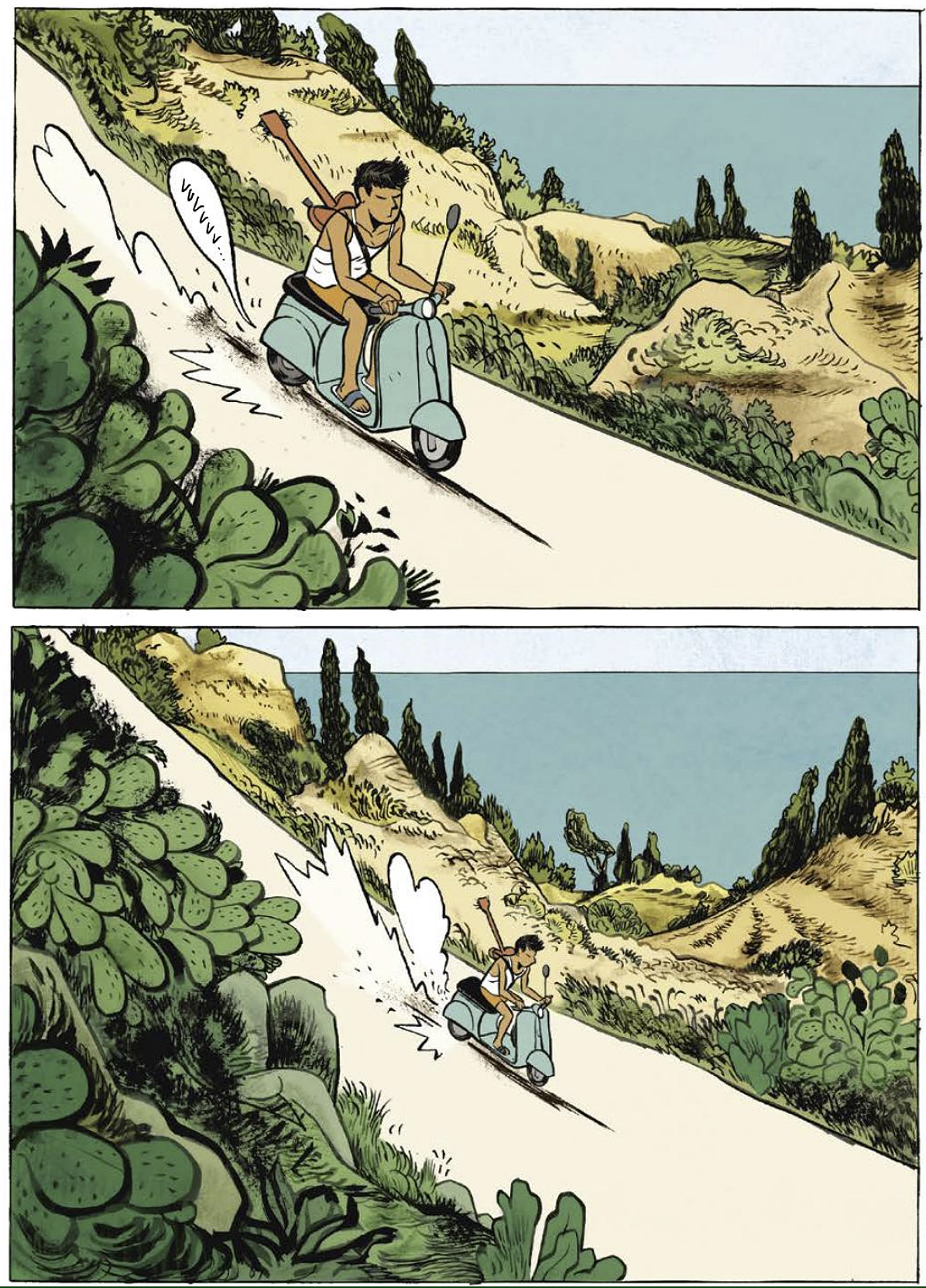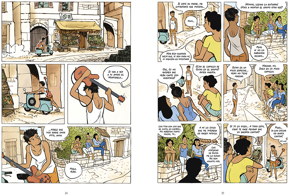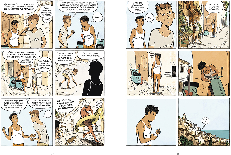 En el caso de Maltempo, y pese al inspiradísimo arte y la maravilla de paisajes con los que Alfred nos regala la vista, el autor desdibuja todo lo idílico que pueda parecer una pequeña isla del sur de Italia en la realidad de sus habitantes, hartos de vivir en un sitio donde nunca pasa nada, donde sus existencias están atadas a un lugar del que parece imposible escapar. Con la Italia de los años sesenta como telón de fondo, desgarrada socialmente, Alfred retrata pese a todo las ilusiones de un grupo de adolescentes a los que les une lo único inmaterial que todos comparten: su amor por la música y el rock’n’roll.