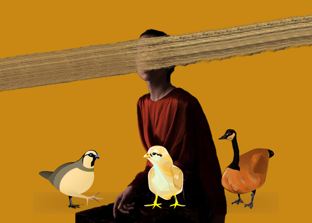 Hubo una vez, un pollo y un pato, que vivían en el lago Platón. Un lugar muy retirado de todo lo mundano. En él, se querían infinitamente. Estaban en paz. Pero, como no sabríamos lo que es la paz si no hubiera nada que por momentos la perturbara, cerca habitaba también una codorniz.