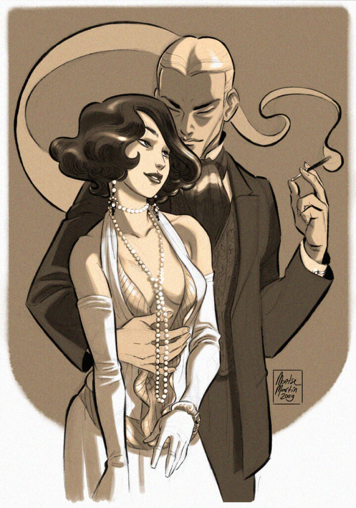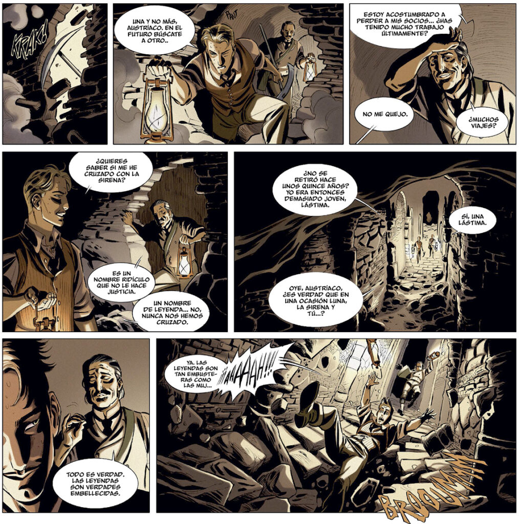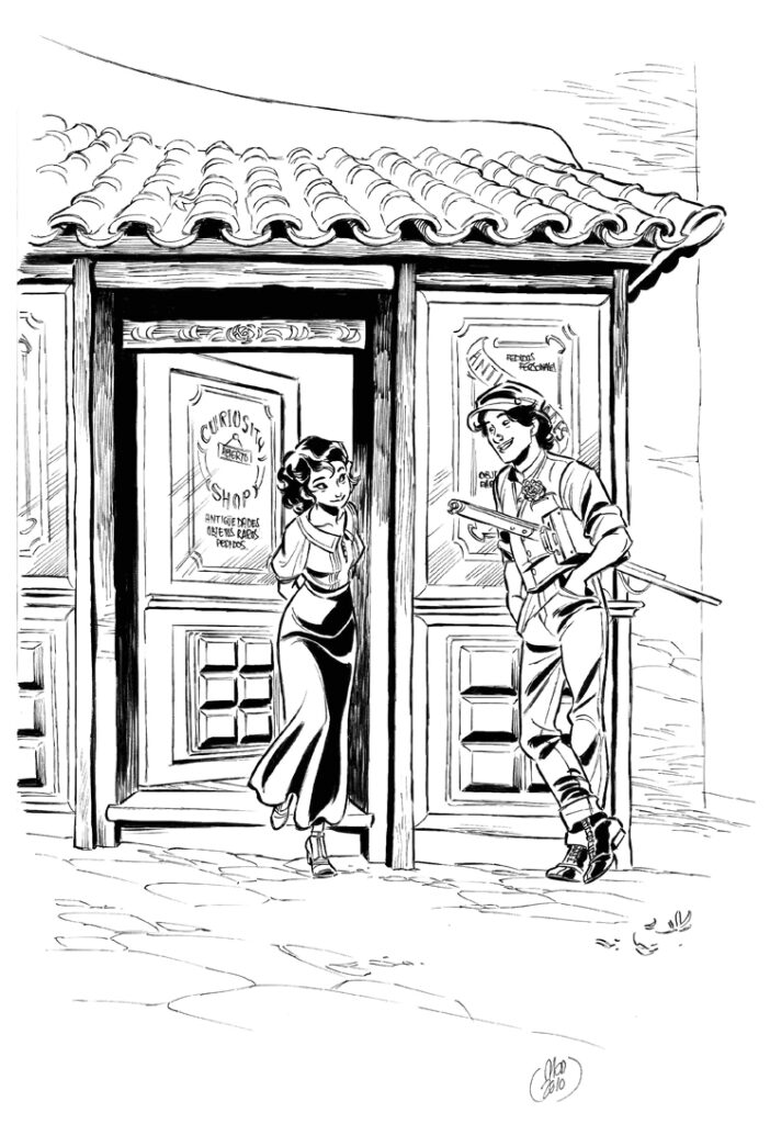 Montse Martín: Hum… creo que Curiosity Shop es la mezcla de muchas historias, libros, tebeos, películas… Teresa tenía algunas ideas para diferentes historias de géneros dispares, y yo tenía muchas ganas de trabajar en un tebeo situado alrededor de los años veinte, una época que siempre me ha gustado mucho, en el que aparecieran intrigas alrededor de un misterioso objeto que empujara de alguna manera a viajar y moverse a los personajes, en busca de la solución al misterio planteado por dicho objeto. Todo por culpa de largos días dibujando al amor de la radio, escuchando la Rosa de los Vientos y la Tertulia de las Cuatro C. La combinación justa de intrigas, misteriosos objetos, leyendas, un pellizco de romance y un ambiente «real» es gracias al maravilloso trabajo de escritura de Teresa, que ha dotado la historia de mucha más profundidad de la que yo hubiera creído posible en un principio…