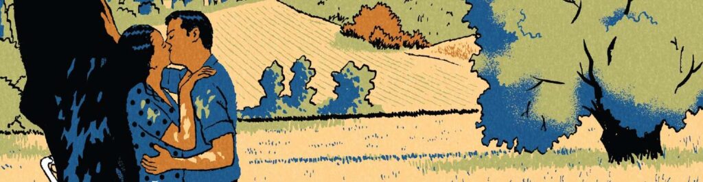 Hacia tiempo que no se cruzaba en mi camino una nueva obra del antes omnipresente e inagotable guionista Zidrou, artífice de obras realmente magníficas ilustrado por autores como Francis Porcel, Oriol Hernández, Man, Homs, Roger Ibañez o Mai Egurza. Y créeme, leer en imágenes las ideas y textos de Zidrou siempre es una experiencia que te reconcilia con el mundo para bien. Tantas historias después, su espíritu se mantiene incombustible y su ánimo tan optimista como siempre incluso presentándonos este libro monotemático sobre lo más buscado y querido, causante también de las heridas más amargas e incurables: el amor. De hecho, su colaboración con el refrescante trazo de David Merveille, un innovador autor proveniente del mundo de la ilustración infantil, convierte este Amore en una curiosa propuesta donde lo mejor de las mil formas de entender el cómic europeo se reúne en un solo libro de historias cortas de amor y desamor ambientado en Italia. «Como vivo en Andalucía -explica Zidrou en una entrevista promocional para su editorial en Francia-, quería escribir una colección de historias de amor llamada “Amor” y ambientada en España. Pero David, que es mitad italiano y tan resentido como musculoso, rápidamente me hizo entender que sería Italia o nada. Tenga en cuenta que Italia en los años 50 y 60 sigue siendo más bonita que España al mismo tiempo, ¡bajo el franquismo!»
