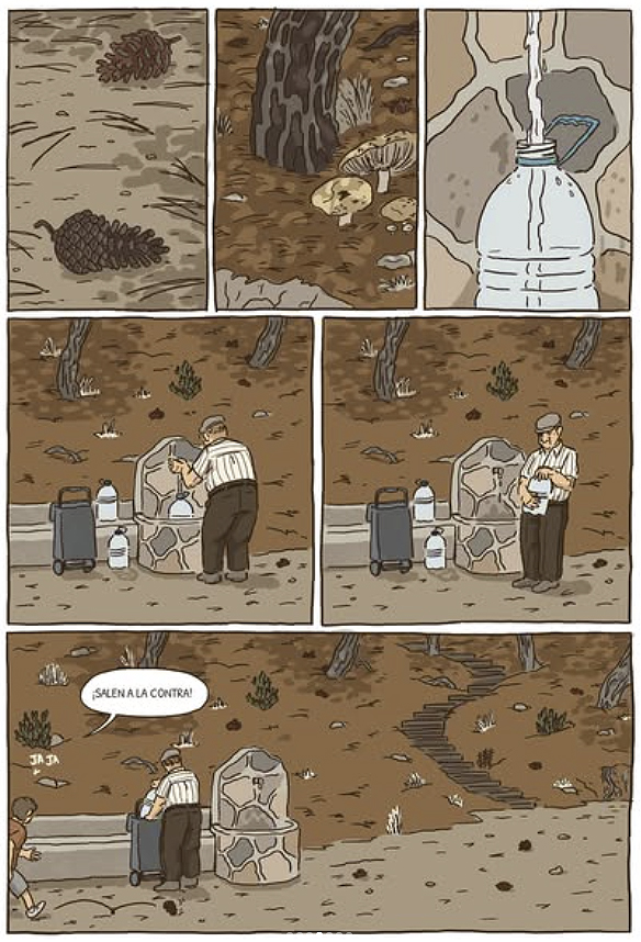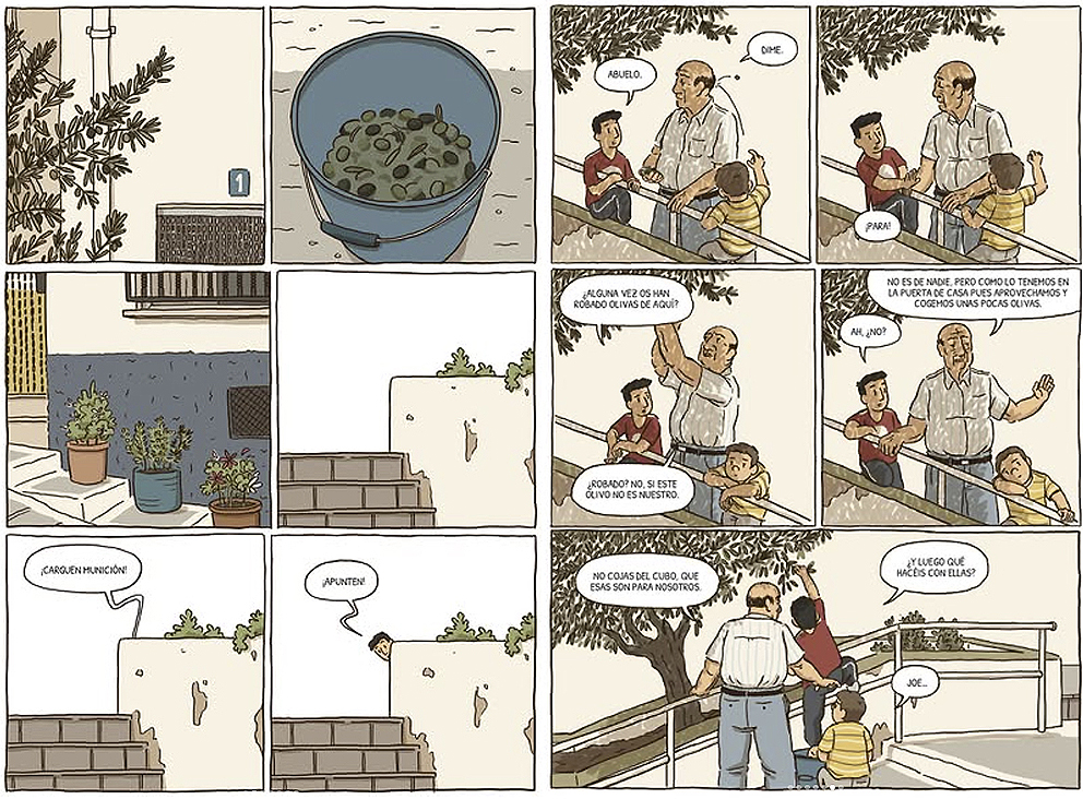 Y aunque la sencillez de su trazo es recurrente a lo largo de toda la obra, resultan evidentes lecturas contemporáneas que el autor no niega. Como buen murciano, las viñetas de El día más largo reflejan los paisajes duros, áridos, carentes de excesivos adornos, de esa tierra agradecida y dura a la vez. Con tonos pálidos y grises narrando el presente desde el Mario y su familia reciben a conocidos y pasado en su obligada estancia en el gris tanatorio, cuando despiertan los recuerdos de su abuelo en otros tiempos, las viñetas se tiñen de esa luz directa mediterránea que pinta las escenas vividas como, por ejemplo, las viñetas de la obra de Paco Roca. «Es imposible negar que Paco Roca es uno de mis principales referentes -confirma Mario Barrachina–, tanto a nivel temático como de estilo. Me gusta mucho la humanidad con la que retrata a sus personajes y las relaciones familiares. Por otro lado, me interesan especialmente autores como Jeff Lemire, por su forma más cruda de retratar a las personas, o Bastien Vivès, que considero que aporta una sensibilidad especial a sus historias».