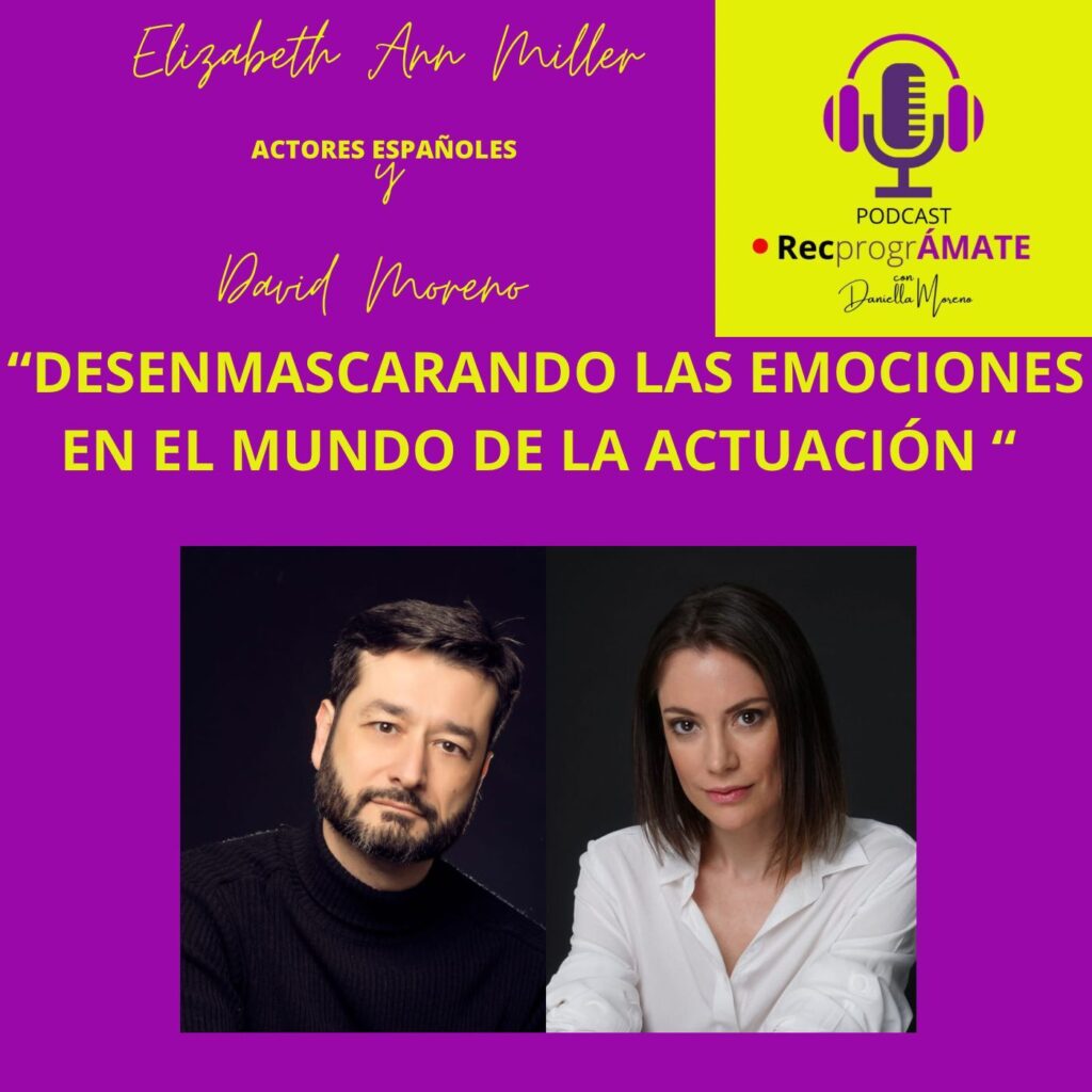 ELIZABETH Y DAVID En este episodio dos actores muy importantes que han colaborado en un sin fin de producciones de teatro , cine y televisión nos hablan de cómo realizan de manera asertiva sus emociones dentro y fuera de su profesión , así como los retos en su carrera profesional que los ha llevado a la cima de muchos logros en su vida. Entre los proyectos que han realizado juntos se encuentra la película a estrenar “Desearás” del director Lorenzo Sanz como protagonistas Elizabeth Ann Miller en el papel de Elena y David Moreno en el papel de Diego, este último ha participado en “Las Horas” “DeXeo” , para Teatro; episódicos en varias series de TV como “Cheers”, “Ciega a citas”, “6 hermanas “,” Velvet”, “Águila Roja”, “Acacias 38”, “Ancla2”, “Apaches” , “Amar es para siempre”, «Allí abajo» y «El Ministerio del Tiempo», «El pueblo» entre otras, protagoniza 3 largometrajes independientes “Keres”, “Ke buen provecho” , “Putero y yo” y «,El Reino» de Rodrigo Sorogoyen y «El Aviso» de Daniel Calparsoro.