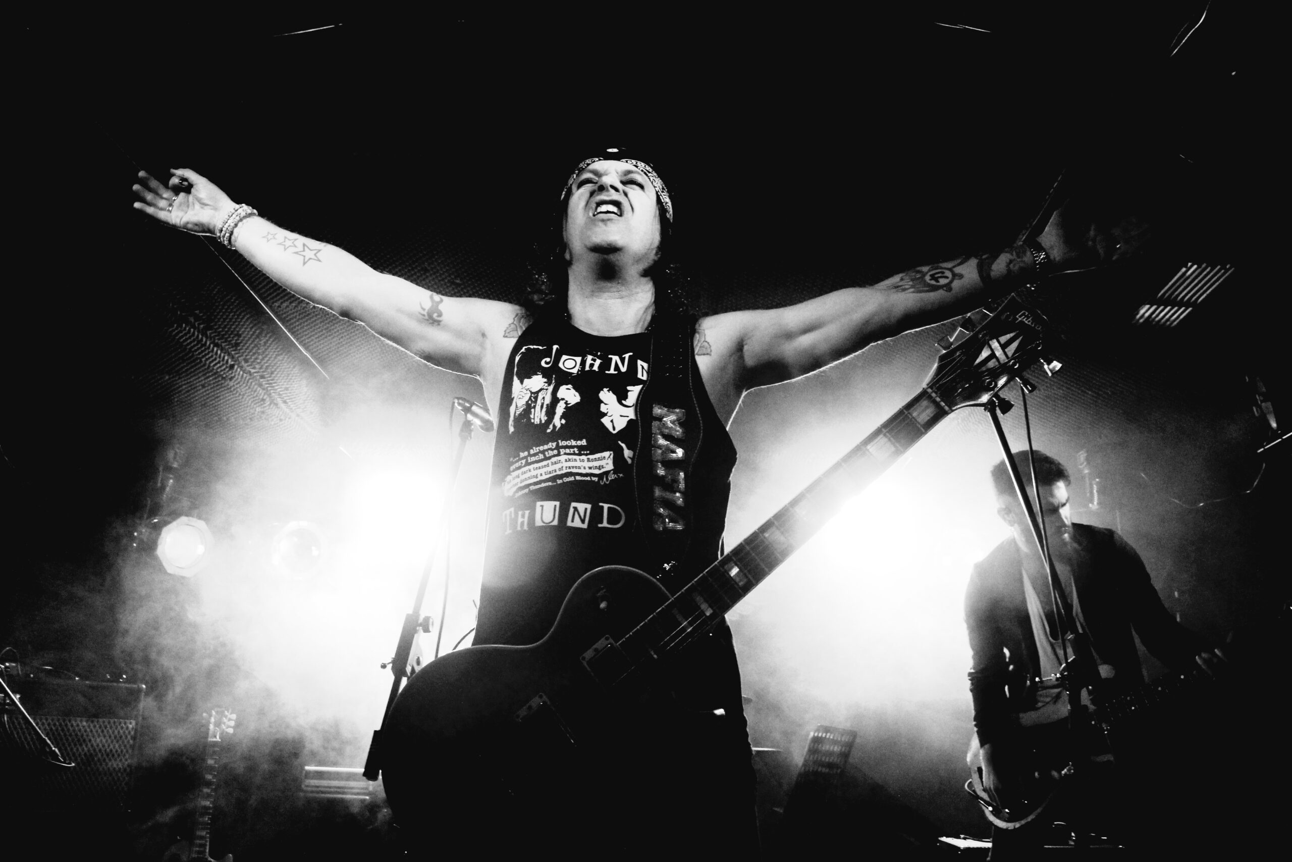 En el set list hubo temas habituales en sus shows pero por primera vez en mucho tiempo logró sorprenderme como la colaboración de Juan con “En la Eternidad”,el sonido más primigenio y glamuroso de “20 th Century Boy” que derrochaba más sensualidad que nunca con la colaboración de Marcos Gandra,que si no me equivoco estuvo compartiendo banda con Mafia en Babylon Boys o dos temas nuevos como “En Babylonia” muy en su sonido más propio pero que a mi me recuerda a un sonido más sleazy de puro sabor ochentero y “Todos mis amigos están muertos” más oscuro y retorcido.