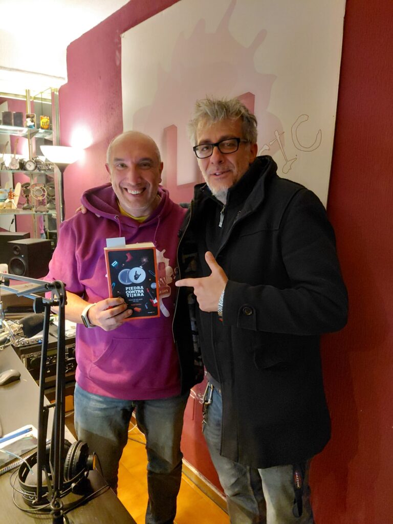 Y en la segunda hora, la música se convirtió en literatura con Rubén González, periodista y autor del ensayo “Piedra contra tijera”, un recorrido de más de 500 páginas que disecciona 30 años de rock español (1991–2021). Un libro que habla de las entrañas: de fanzines, de salas, de ruido y resistencia, de bandas olvidadas y verdades incómodas.