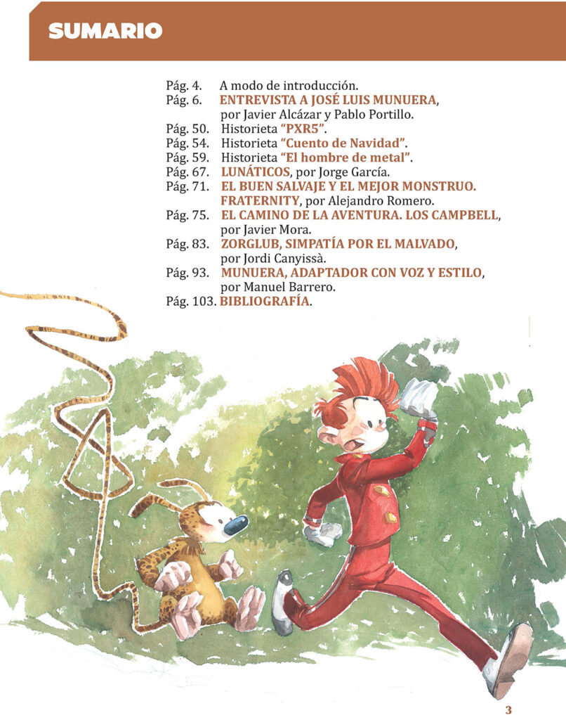El director de esta revista menciona además en la introducción que con este formato, imitan «el antiguo modelo de la revista francesa Les Cahiers de la Bande Desinée«, donde cada número estaba dedicado de manera monográfica a un autor en el más amplio sentido de la palabra. El elegido para iniciar esta prometedora andadura es José Luis Munuera, un dibujante y guionista que lleva ganándose el respeto y cariño del aficionado desde hace más que muchos años a base de trabajar y seguir trabajando. No podemos estar más de acuerdo en la descripción que de él se hace en Autores de Cómic: «un magnífico autor con una amplia obra a sus espaldas (…) que no solo tiene un gran dominio del medio, cosa que sabe cualquiera que haya leído sus libros, sino que demuestra un gran conocimiento del mismo y de sus mecanismos de producción».